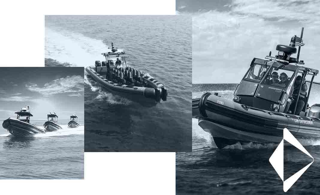 Law Enforcement Rigid Inflatable boats (RIB) built strong with outstanding handling and the highest performance hull designs for the Police, patrol and Special Ops departments.
